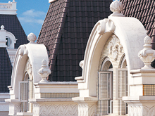 EPS構(gòu)件以高強(qiáng)度阻燃型聚苯乙烯為基體,耐堿玻璃纖維網(wǎng)格布作為中間層,外層由無(wú)機(jī)抗老化聚合物乳液復(fù)合成型。電腦控制線切割,尺寸精確;產(chǎn)品自重輕,安全性高;徹底解決熱橋問(wèn)題;安裝簡(jiǎn)便,易搬運(yùn)。上世紀(jì)80年代率先開(kāi)始在歐美等國(guó)廣泛應(yīng)用,是傳統(tǒng)GRC構(gòu)件的劃時(shí)代升級(jí)產(chǎn)品。主要適用于歐式風(fēng)格小區(qū)、酒店及商業(yè)街等建筑二樓以上檐角線、腰線及庭柱等部位。